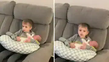 Μπαμπάς «παγώνει» με αυτό που βλέπει να κάνει το νήπιο στο νεογέννητο