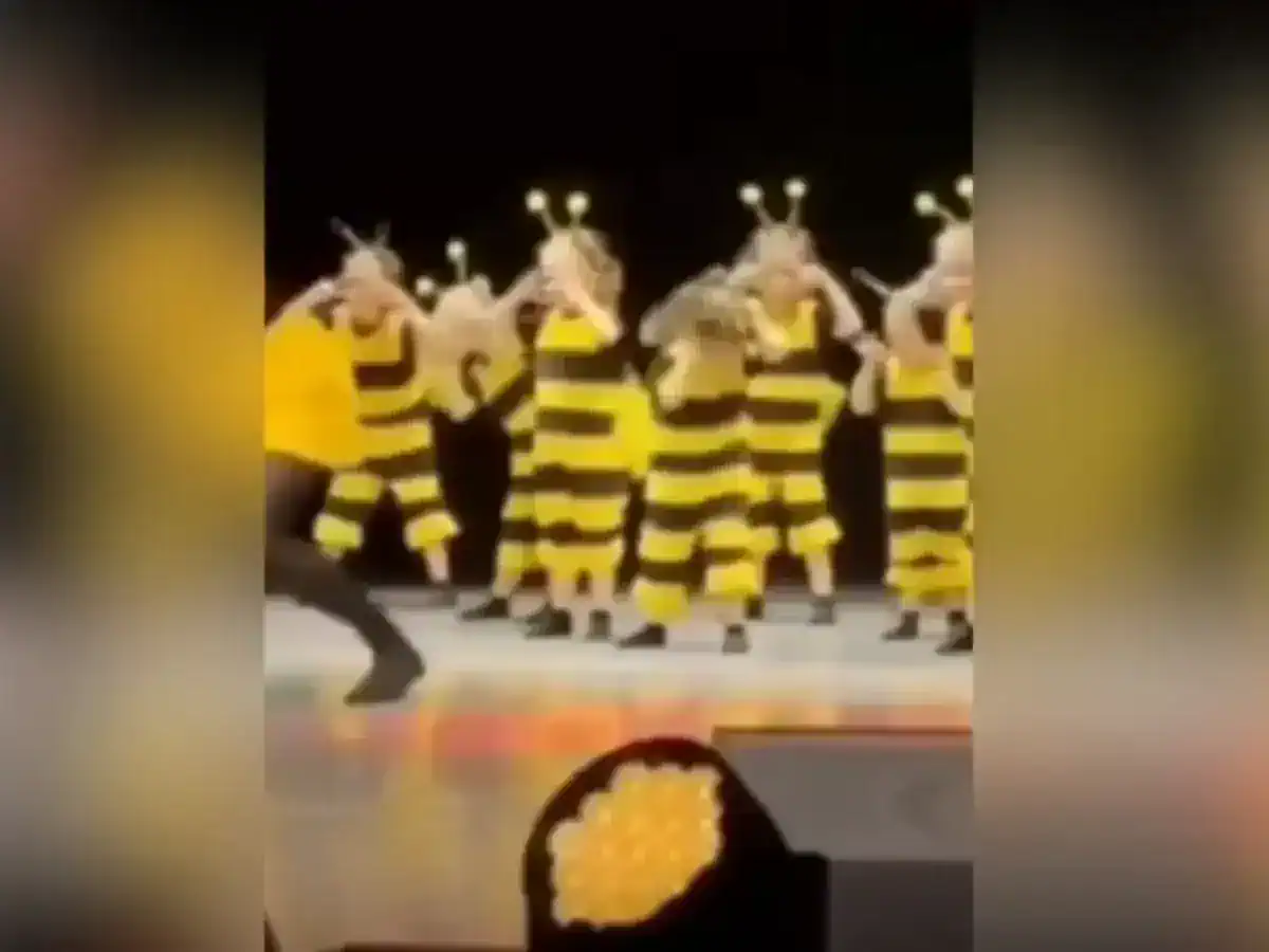 Ένα βίντεο που κυκλοφορεί στα social media δείχνει μια νηπιαγωγό ντυμένη μέλισσα να καθοδηγεί τους μαθητές της, επίσης ντυμένους μέλισσες, σε μια συγχρονισμένη χορευτική παράσταση πάνω στη σκηνή του σχολείου.