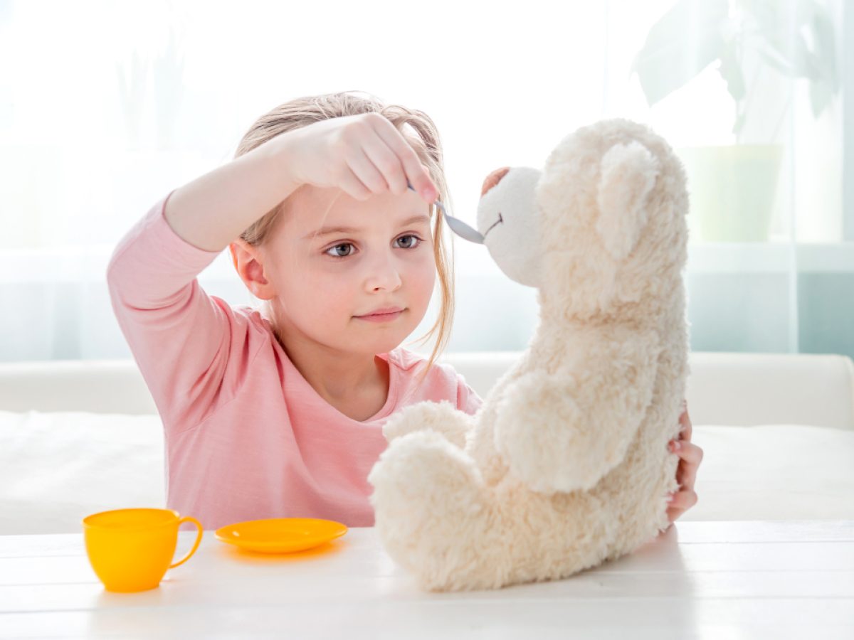 Προτροπές όπως το να ρωτήσει το παιδί αν το λούτρινο «του αρέσει το φαγητό» ή να προσέξει να μην του δώσει «πολύ μεγάλη μπουκιά», ενισχύουν τόσο τη γλωσσική ανάπτυξη όσο και την κατανόηση αιτίου-αποτελέσματος.