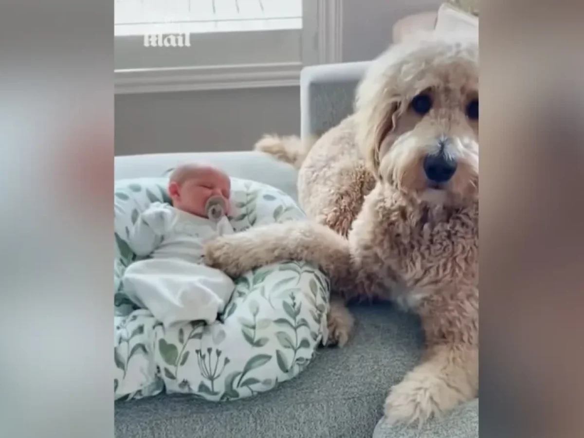 @dailymail Goldendoodle loves to fuss over baby brother 😍 #goldendoodle #cuteanimals #animals ♬ original sound – Daily Mail